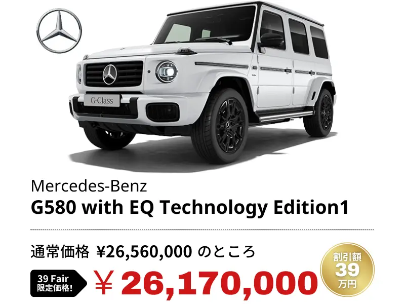 GクラスならではのDNAを継承しながら、オフロード走破性を進化させた、全く新しい選択肢を提案する一台です。 - 39 Fair 特別成約記念品&備考