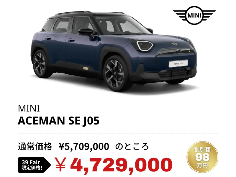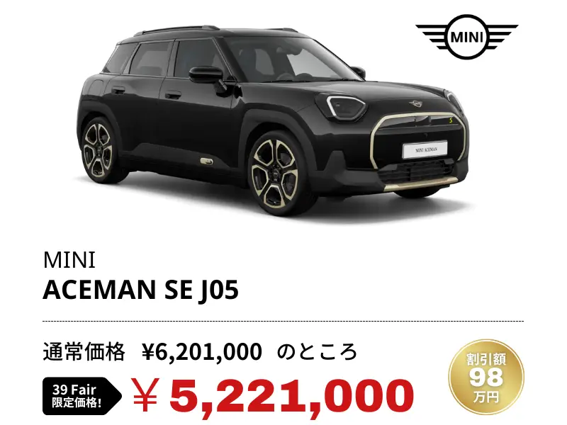 All-Electric MINI Acemanは、都会で暮らしながらも冒険を愉しみたい人にぴったりの電動プレミアム・コンパクトSUVです。 - 39 Fair 特別成約記念品&備考